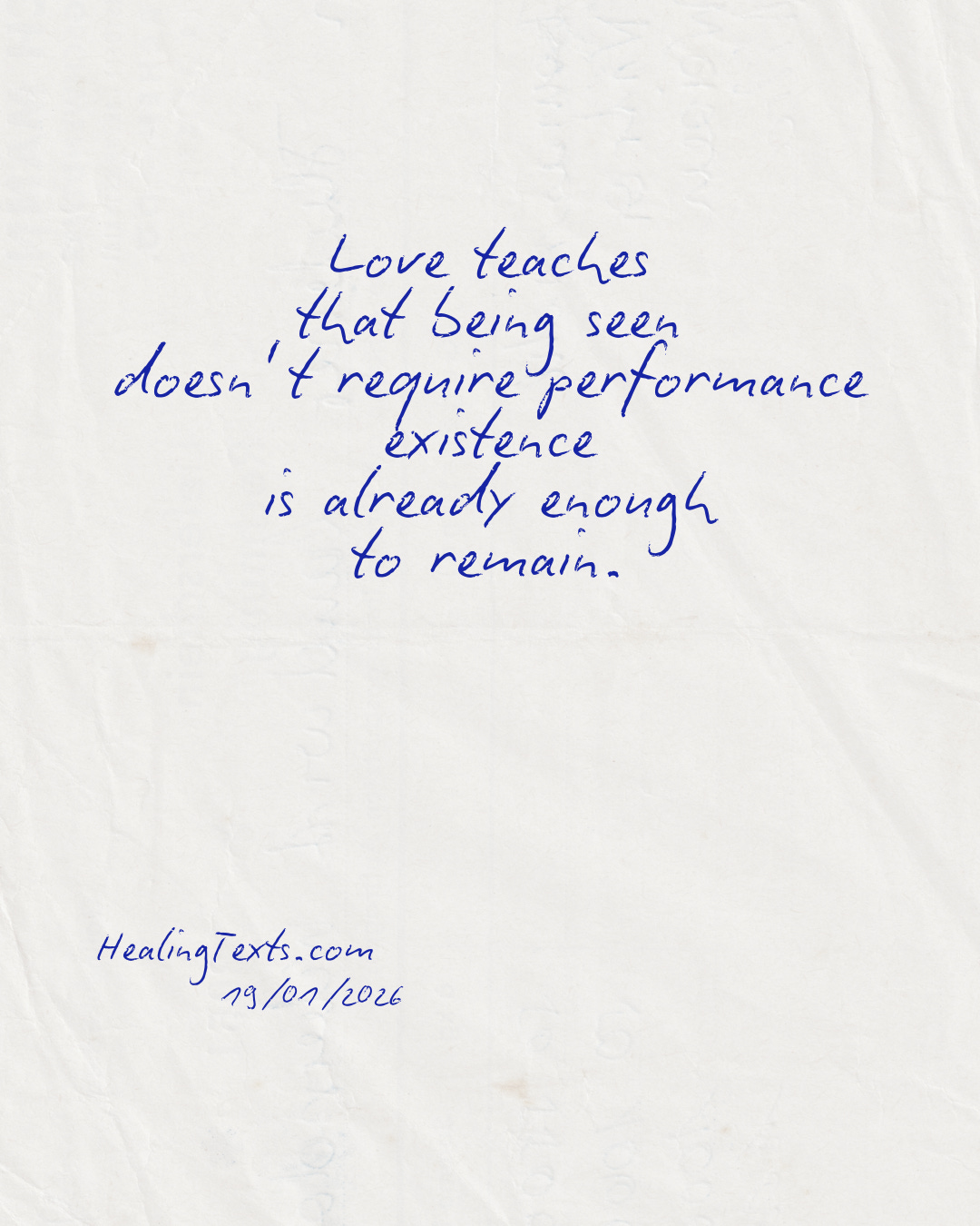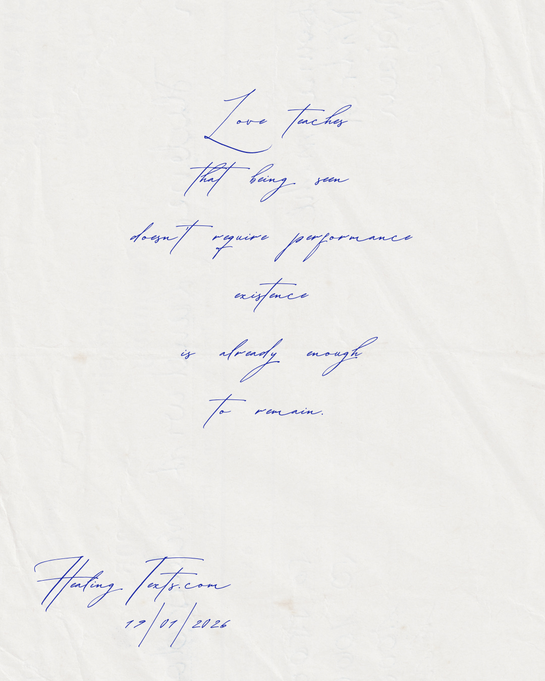 Love teaches that being seen doesn’t require performance. Existence is already enough to remain.
