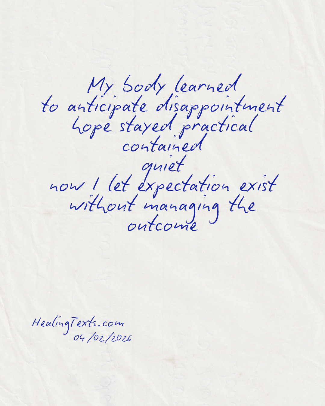 My body learned to anticipate disappointment. Hope stayed practical. Contained. Quiet. Now I let expectation exist without managing the outcome.