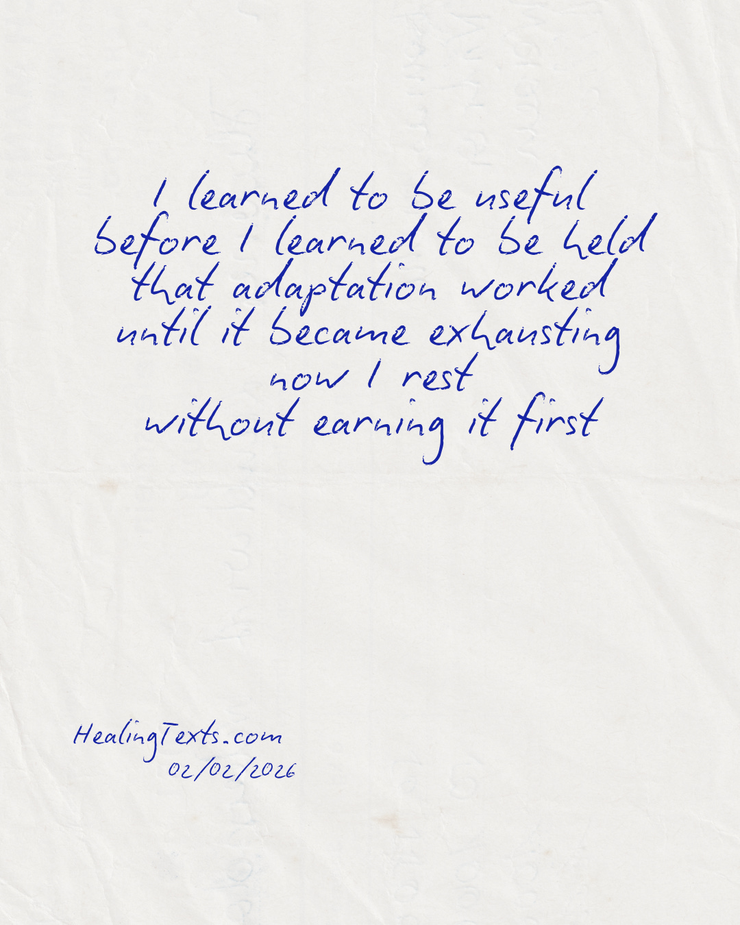 I learned to be useful before I learned to be held. That adaptation worked until it became exhausting. Now I rest without earning it first.
