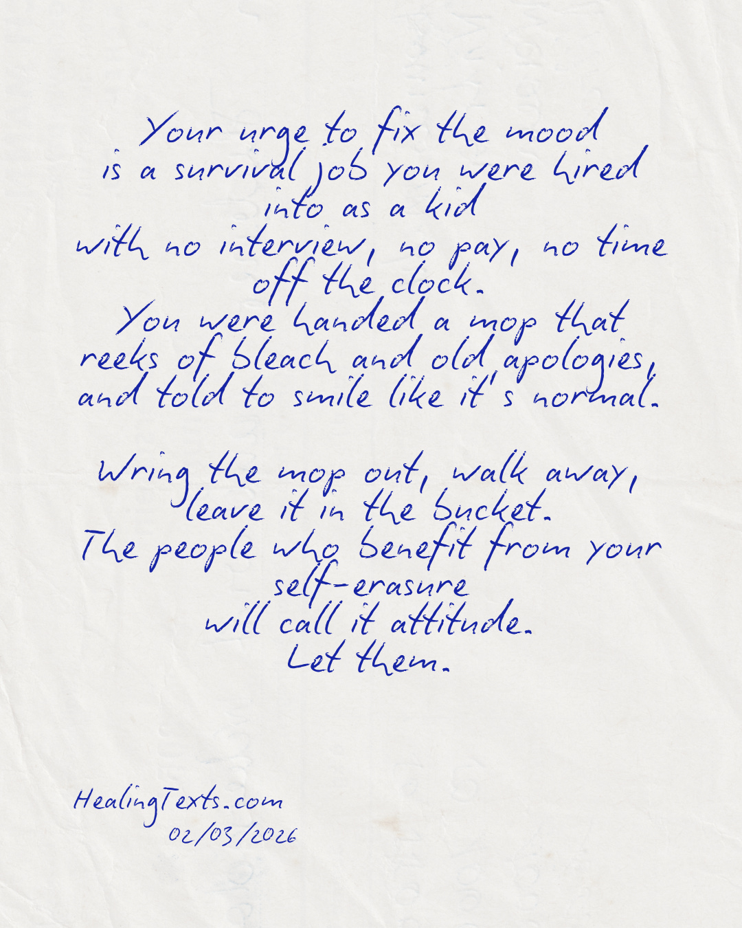 You were taught to keep the peace by cutting pieces off yourself. Stop volunteering. Some people will name your refusal disrespect because your exhaustion made their life easier.