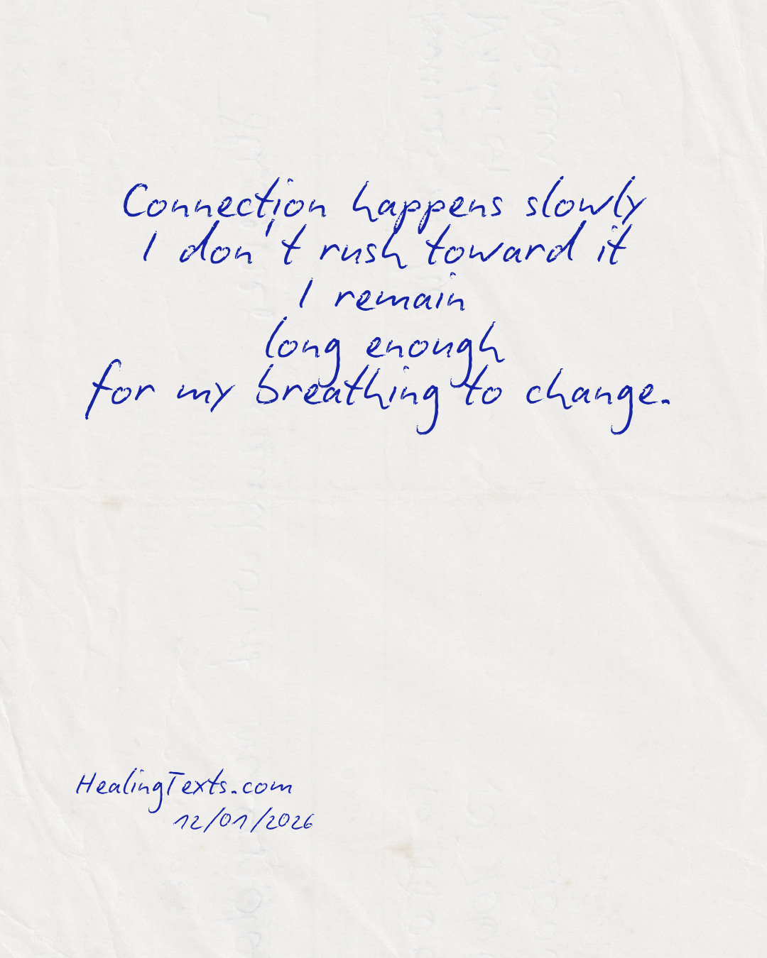 Connection happens slowly. I don’t rush toward it. I remain long enough for my breathing to change.