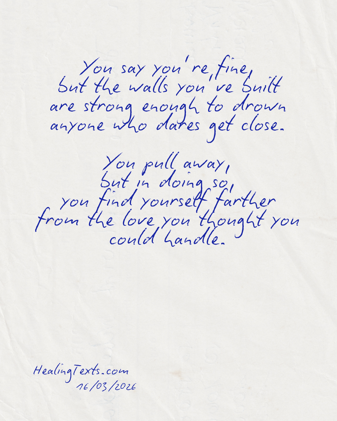 If closeness feels like threat, you will keep retreating until you cannot feel anything at all. Practice letting someone near in small doses. Let love meet you at your pace.